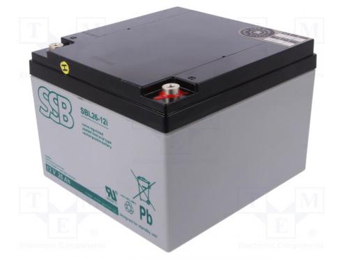 Hersteller SSB Akku-Typ Blei- Nennspannung 12V Fassungsvermögen 26Ah Technologie AGM Caractéristiques des batteries wartungsfrei Äußere Abmessungen 166x175x125mm Lebensdauer 10-12 Jahre Ausgänge Schraube M5 Gewicht 8kg Akkuanwendung Alarmanlagen Akkuanwendung Systeme zur Aufrechterhaltung der Versorgung