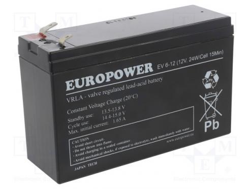 Hersteller EUROPOWER Akku-Typ Blei- Nennspannung 12V Fassungsvermögen 5.5Ah Technologie AGM Caractéristiques des batteries wartungsfrei Äußere Abmessungen 151x51x100mm Lebensdauer 6-9 Jahre Ausgänge Verbinder 4,8mm Ausgänge Verbinder 6,35mm Akkuanwendung Systeme zur Aufrechterhaltung der Versorgung Akkuanwendung UPS Herstellerserie EV
