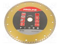 Hersteller PROLINE Elektrowerkzeuge Zuberhör-Typ Diamantschneidscheibe Durchmesser der Scheibe 230mm Durchmesser der Öffnung 22.23mm Schleifscheibenstärke 2.8mm Werkzeuganwendung Beton Werkzeuganwendung Glasur Werkzeuganwendung Marmor Werkzeuganwendung Stein Werkzeuganwendung ziegelartige Materialien