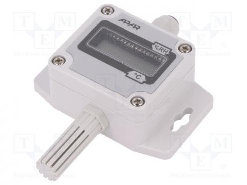 Hersteller APAR Wandler-Typ Temperatur und Feuchtigkeit Versorgungsspannung 12...36V DC Ausgangskonfiguration 4-20mA analog Betriebstemperatur -20...70°C Temperaturmessbereich -30...80°C Toleranz ±2% Dichtheitsklasse IP40 Feuchtigkeitsmessbereich 0...100% RH Verwendeten Displays-Art LCD