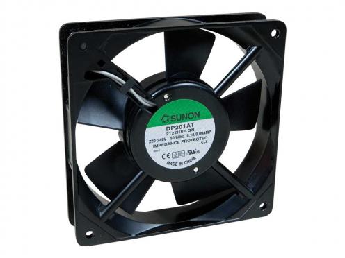 Ventilator, 220-240 VAC/100 mA, Aufnahmeleistung = 19,00 W, Drehzahl = 2000 RPM, Lager = Gleitlager, Luftdurchsatz = 64 CFM/ 108,73 m3/h, Geräuschpegel = 43,0 dBA Anschlüsse = faston