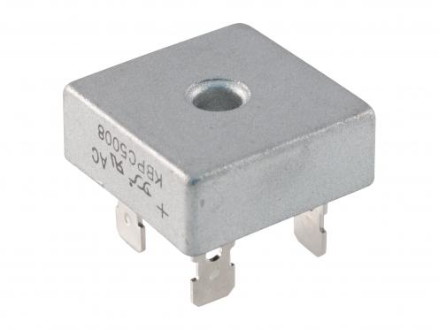 Einphasen-Diodenbrücke KBPC5008FASTON, 800V/50A. Uac: 560V Udc: 800V Uf: 1,1V If 50A Ifsm: 500A Anschluss: Fastons Gehäuse: 29 x 29mm Metall Betriebstemperatur: -55..125°C