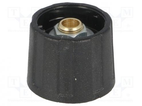Hersteller OKW Potentiometer Zubehör-Typ Drehknopf Drehknopf-Art ohne Anzeige Material ABS Achsendurchmesser 6.35mm Drehknopfgröße Ø20x15.5mm Farbe schwarz Befestigung Druckmechanismus mit Mutter Achsoberfläche glatt Achtung! Deckel separat erhältlich Serie A2520 Passendes Zubehör A4120