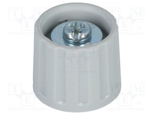 Hersteller RITEL Potentiometer Zubehör-Typ Drehknopf Material Polyamid Achsendurchmesser 6mm Drehknopfgröße Ø21x17.5mm Farbe grau Befestigung Druckmechanismus mit Schraube Achsoberfläche glatt Knopfeigenschaften Schraube mit Deckel verdeckt Betriebstemperatur -20...70°C