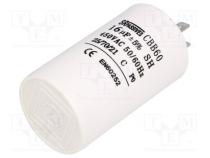 Hersteller SR PASSIVES Kondensator-Typ Polypropylen Kondensatorenanwendung für Motoren, Betrieb Fassungsvermögen 16µF Gehäuseabmessungen Ø40x70mm Betriebstemperatur -25...70°C Toleranz ±5% Klimakategoria 25/70/21 Lebensdauer 3000h Ausgänge Verbinder 6,3mm Betriebsspannung 450V