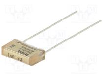 Hersteller KEMET Kondensator-Typ Papier Kondensator-Art Y2 Fassungsvermögen 1nF Ausgangsraster 10.2mm Toleranz ±20% Montage THT Kondensatorenserie PME271Y Gehäuseabmessungen 13.5x3.9x7.5mm Impulsresistenz 2kV/μs Betriebstemperatur -40...100°C Leitungslänge 30mm Fassungsvermögen - pF 1000pF Max. Betriebsspannung 250V AC Max. Betriebsspannung 1kV DC