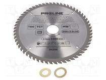 Hersteller PROLINE Elektrowerkzeuge Zuberhör-Typ Kreissäge Durchmesser der Scheibe 200mm Durchmesser der Öffnung 30mm Anzahl der Zähne 60 Material Hartmetall Eigenschaften der Werkzeuge gehärtet Werkzeuganwendung Holz Setinhalt mit den den Durchmesser der Befestigungsbohrung reduzierenden Ringen