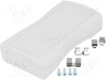Gehäuse-Typ für Fernbedienung Größe X 64.9mm Größe Y 119.3mm Größe Z 26.5mm Gehäusematerial ABS Gehäusefarbe hellgrau Gehäusebeschreibung Batterieclip Gehäusebeschreibung Batterieclip Gehäusebeschreibung Vertiefung für Folientastatur Dichtheitsklasse IP40 Gehäuseserie BOS-Streamline Hersteller BOPLA