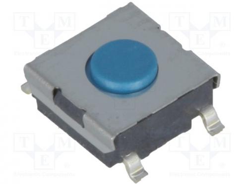 Schalter-Typ Mikroschalter TACT Kontaktkonfiguration SPST-NO Anzahl Positionen 2 Anzahl stabiler Positionen 1-stellig Kontaktbelastbarkeit DC @R 0.05A / 24VDC Montage SMT Beleuchtung Fehlen Schaltkraft 2.55N Gehäuseabmessungen 6 x 6mm Knopfhöhe 3.1mm Schaltweise OFF-(ON) Tastenform rund Ausgangsraster 5.9x9.6mm Betriebstemperatur -25...70°C Tastenfarbe blau Ausgänge Printmontage Max. Kontaktwiderstand 100mΩ Min. Isolationswiderstand 100MΩ Herstellerserie B3FS Mechanische Haltbarkeit 100000Zyklen Tastenhub 0.25mm Hersteller OMRON