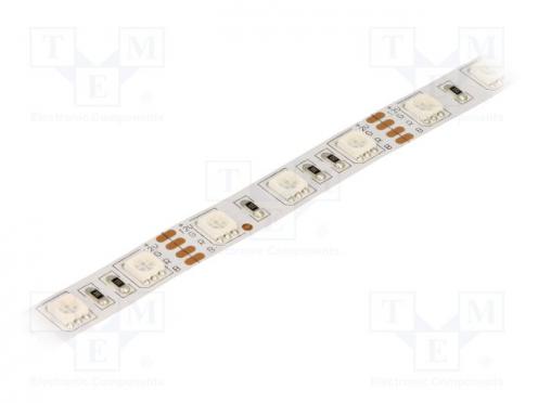 Hersteller LUCKY LIGHT Modul-Typ LED-Band LED-Farbdioden RGB Gehäuse 5050 Anzahl der LEDs auf Meter 60 Dichtheitsklasse IP20 Max. Leistung je Meter 14.4W/m Betriebsspannung 12V Helligkeit 300lm Montage SMD Anzahl Pole 4 Betriebstemperatur -20...60°C Leuchtwinkel 120°