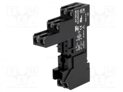 Relais Zubehör-Typ Sockel Anzahl Pole 8 Nennstrom 12A Nennspannung 250V AC Höhe 61mm Breite 15.5mm Verwendung RT Montage DIN Ausgänge Schraubanschlüsse Relaisserie RT2 Betriebstemperatur -25...70°C Ausgangsraster 5mm Hersteller TE Connectivity