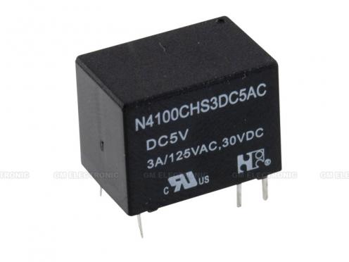 Elektromagnetisches Relais mit DC-Spule Spulenparameter: U 5 V R 125 Ohm P 0,2 W Kontakt: Kontaktart: 1 x Wechsler Max. Strom durch Kontakt 5 A Anzugs-/Abfallzeit 5/5 ms