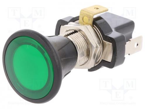 Hersteller SCI Schalter-Typ herausgezogen Anzahl Positionen 2 Kontaktbelastbarkeit DC @R 10A / 14V DC Tastenfarbe grün Beleuchtung LED Beleuchtungsfarbe grün Ausgänge Verbinder 6,3x0,8mm Montage für Frontplatten Frontplattenstärke max. 6mm Betriebstemperatur -25...70°C Montageabmessungen Ø14.2mm Schaltweise OFF-ON Schalterform hervorstehend Schalterform rund Herstellerserie A3-30 Anzahl stabiler Positionen 2