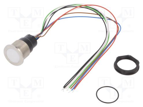 Hersteller SCHURTER Schalter-Typ kapazitiv Anzahl Positionen 2 Kontaktkonfiguration SPST Kontaktbelastbarkeit AC @R 0.1A / 42V AC Kontaktbelastbarkeit DC @R 0.1A / 60V DC Dichtheitsklasse IP67 Schaltweise OFF-ON Beleuchtung LED Beleuchtungsfarbe RGB Ausgänge Leitungen Betriebstemperatur -40...60°C Elektrische Lebensdauer 5000000 Zyklen Mechanische Haltbarkeit 5000000 Zyklen Montageabmessungen Ø19mm Schalterform rund Herstellerserie CPS Anzahl stabiler Positionen 2