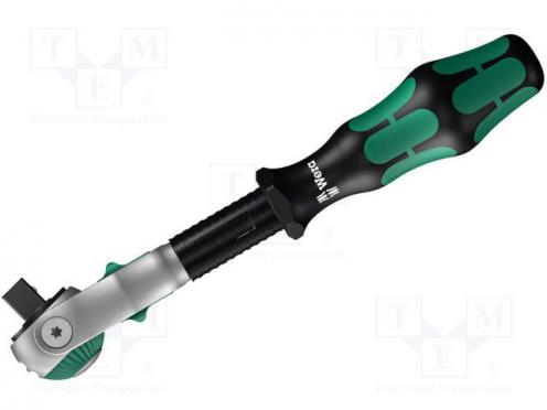 Werkzeug-Typ Schlüssel Schlüssel-Art Ratschen Schlüsseleigenschaften feststellbares Kopfteil 0°, 15°, 90° Schlüsseleigenschaften ergonomischer Griff mit einen zweikomponenten Kunststoff mit Antirutscheigenschaften gewährleistet ein komfortables Greifen des Werkzeugs Schlüsseleigenschaften drehbares Kopfteil Schlüsseleigenschaften der Griff ist mit einem umschaltbaren Ratschenmechanismus versehen: links, rechts gesperrt Länge des Werkzeugs 199mm Endstück-Art 3/8" Hersteller WERA