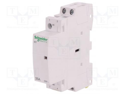 Hersteller SCHNEIDER ELECTRIC Schütz-Typ 2-Richtung Installation Betriebsstrom max. 25A Steuerspannung 24V AC Kontaktkonfiguration NO x2 Montage für DIN-Schiene Dichtheitsklasse IP20 Herstellerserie ICT Betriebstemperatur -5...60°C Breite 18mm Höhe 81mm Isolationsspannung 0,5kV