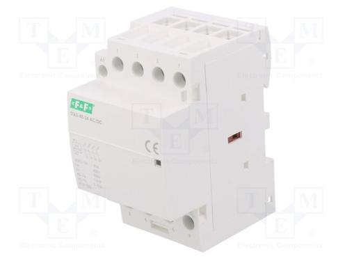 Hersteller F&F Schütz-Typ 4-Richtung Installation Betriebsstrom max. 63A Steuerspannung 24V AC Steuerspannung 24V DC Kontaktkonfiguration NO x4 Montage für DIN-Schiene Dichtheitsklasse IP20 Ausgänge Schraubanschlüsse Betriebstemperatur -25...50°C