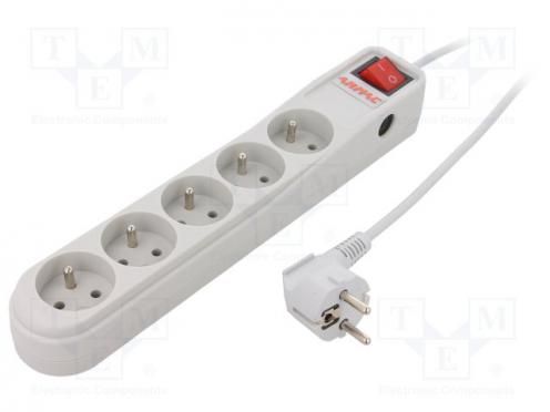 Steckdosenleiste Absichernd Buchsen 5 250VAC 10A Farbe grau - Produkt beschreibung