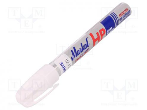 Hersteller MARKAL Stift-Typ mit flüssiger Farbe Farbe weiss Bezeichnung Pro-Line HP Spitzenform rund Betriebstemperatur -46...66°C Anwendung der Stifte für Beschriftungen unter anderem auf Glas, Kunststoff, Gummi und Metall Anwendung der Stifte für Beschriftungen unter anderem auf verölten, nassen und verrosteten Oberflächen Eigenschaften des Mittels Formel verhindert verwischen auf nassen oder feuchten Oberflächen Eigenschaften des Mittels Metallkorpus erhöht Widerstand Eigenschaften des Mittels ohne Xylole in der Farbe