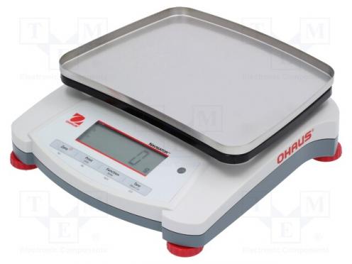 Hersteller OHAUS Geräte-Typ Waage Belastbarkeit der Waage max. 12kg Waage-Art Präzisions- - rechnend Äußere Abmessungen 240x250x74mm Schalengröße 230x174mm Stromquelle 4 Batterien 1,5V LR14 (C) Stromquelle 230V AC 50Hz Stromquelle ohne Batterie Luftfeuchtigkeit max. 85% Ablesebereich 1000mg Betriebstemperatur 10...40°C Verwendeten Displays-Art beleuchtet Verwendeten Displays-Art LCD Legalisierungszeugnis nein Messeinheit ct Messeinheit dwt Messeinheit g Messeinheit grn Messeinheit kg Messeinheit lb Messeinheit lb:oz Messeinheit N Messeinheit oz Messeinheit ozt Standardausstattung Netzteil Art der Stecker EU Betriebsdauer des Akku ~270h Interface Ethernet (optional) Interface RS232 (optional) Interface USB (optional) Serie Navigator
