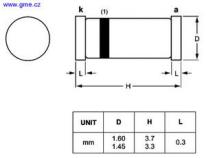 Diode 43V/0,5W, MiniMELF (SOD80) Uzn = 43V Izmax = 12mA Pmax = 0,5W Gehäuse = MiniMELF (SOD80)
